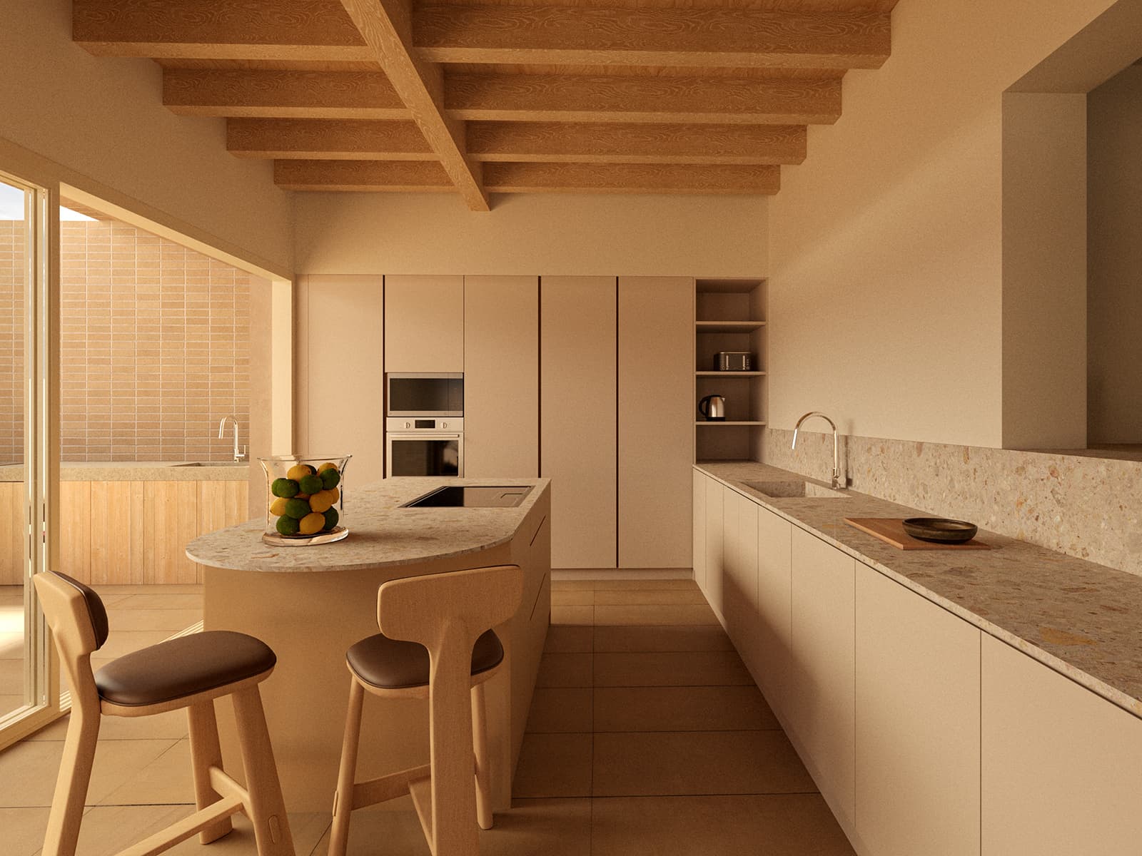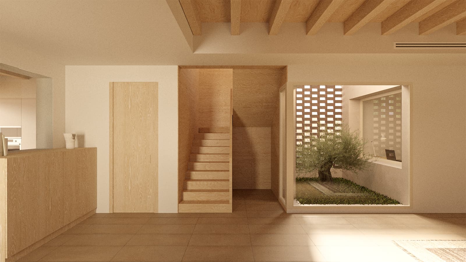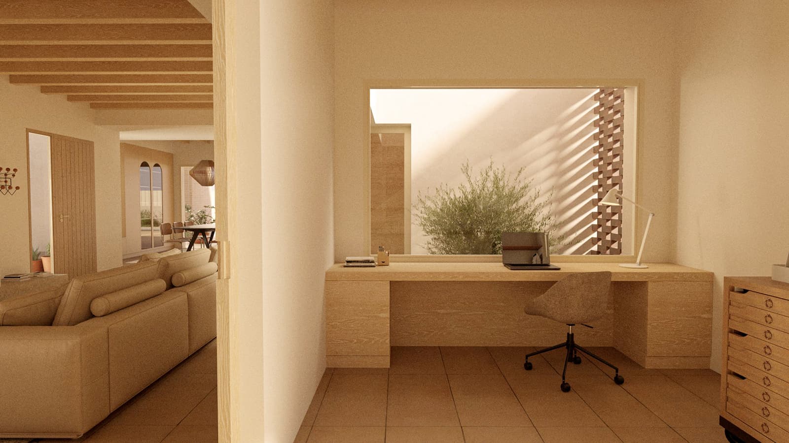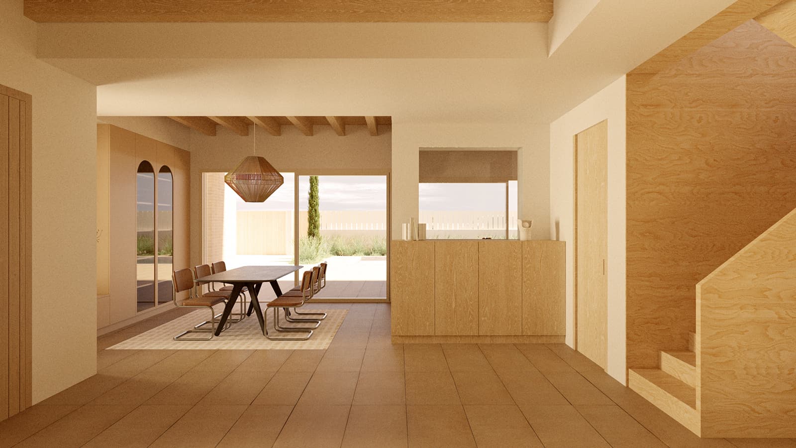 La organización de los espacios prioriza la luz natural, la ventilación cruzada y la continuidad entre interior y exterior. Patios, aperturas y recorridos generan una secuencia doméstica pensada para el día a día.