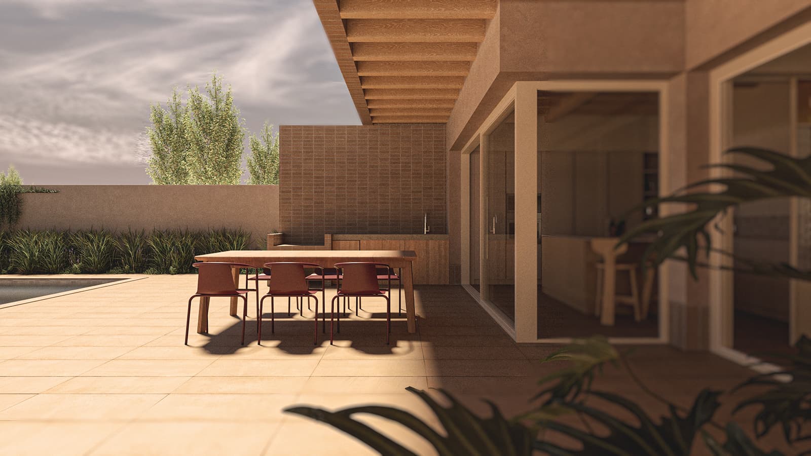 Una materialidad sobria y honesta refuerza el carácter sereno de la vivienda, donde cada decisión responde al entorno, al clima y a una forma pausada de habitar.